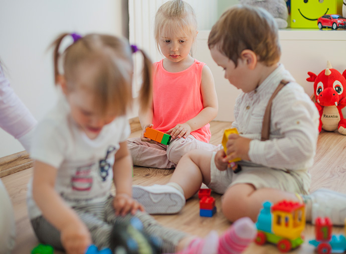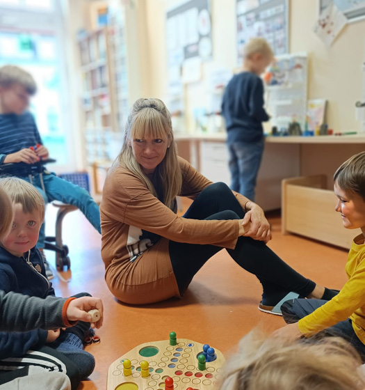 In der mittleren Gruppe werden bis zu 14 Kinder (im Alter von 2,5 – 4 Jahren) von 2 Erzieher/innen betreut.